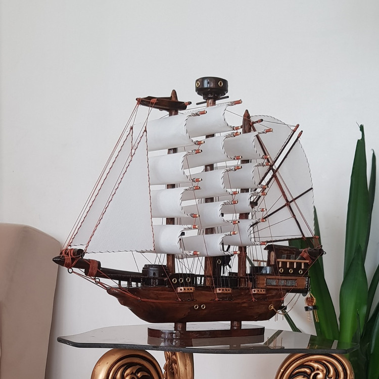 این کشتی فقط یک دکوری نیست، یک روایت از سفرهای دور و رویاهای دریانوردی است. با چوب طبیعی و دستان هنرمند ساخته شده تا شکوه کشتیهای بادبانی قدیمی را زنده کند.