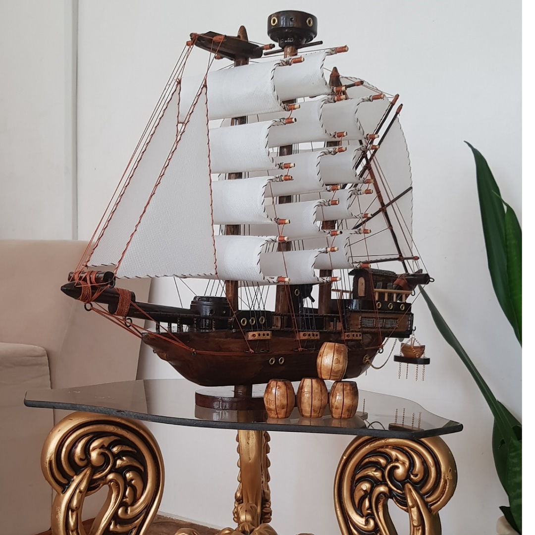 این کشتی فقط یک دکوری نیست، یک روایت از سفرهای دور و رویاهای دریانوردی است. با چوب طبیعی و دستان هنرمند ساخته شده تا شکوه کشتیهای بادبانی قدیمی را زنده کند.